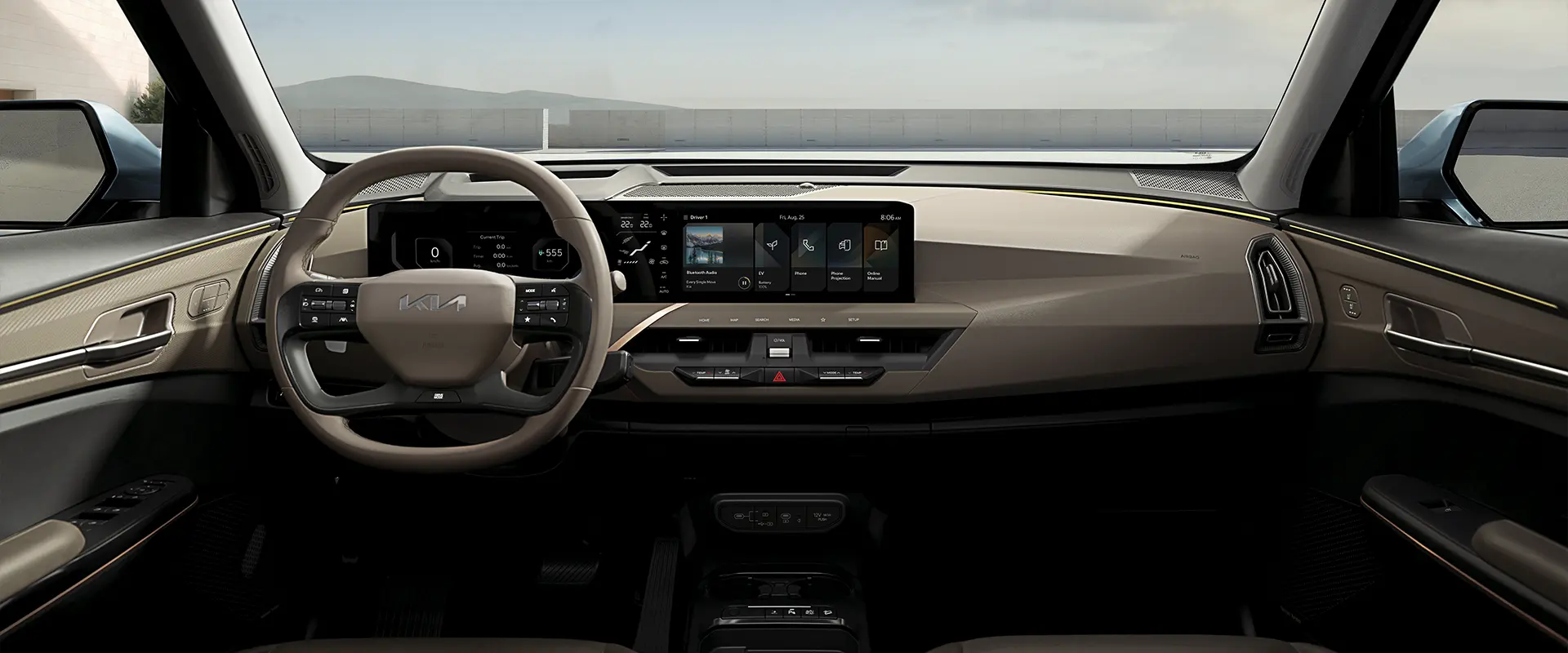 The panoramic triple display creates an immersive experience, seamlessly integrating information and entertainment within an elegant cabin for modern, connected driving. It features a 12.3″ supervision cluster, a 5.3″ central comfort display, and a 12.3″ infotainment screen, compatible with Android Auto and Apple CarPlay.